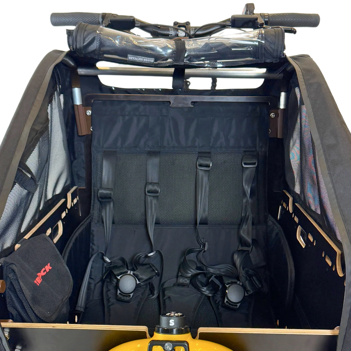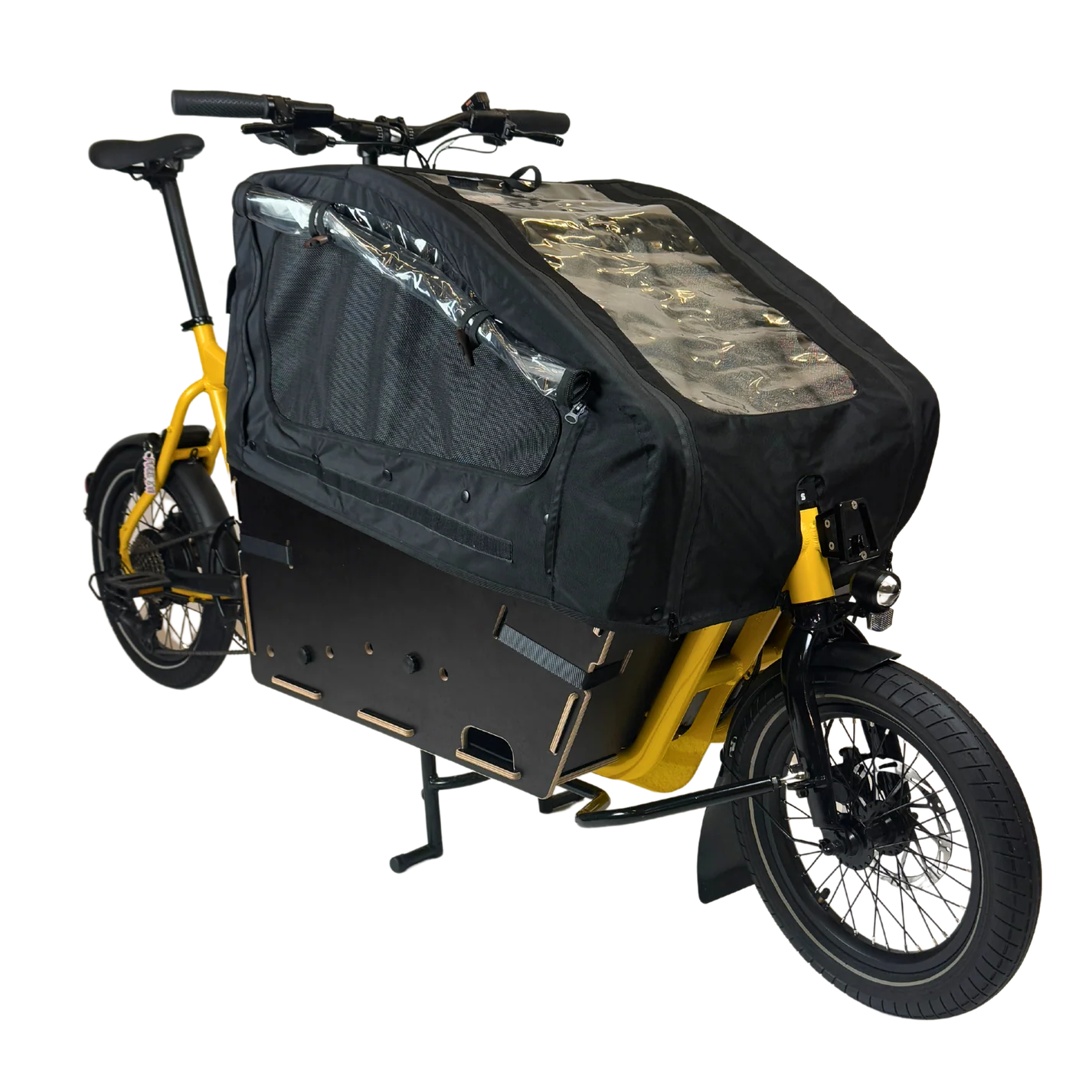 Cadre ultra-stable en aluminium trempé 6061. Composants de direction et béquille renforcés en acier chromoly. Roues à 36 rayons à l’avant et à l’arrière. Pneus cargo larges et renforcés avec protection anti-crevaison.